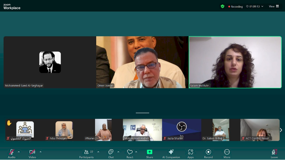 ACT, in partnership with the Regional Network for Reconciliation and Forgiveness in the Arab Region, organized a specialized online workshop on combating hate speech in Libya as part of the “Voices for Harmony: Combating Religious Hate Speech in the Arab Region” project. The workshop brought together more than 20 participants, including academics, religious leaders, civil society representatives, women, and youth, for a dialogue on hate speech and its various forms in Libya. The workshop was moderated and facilitated by Dr. Omar Jumaa from Libya.