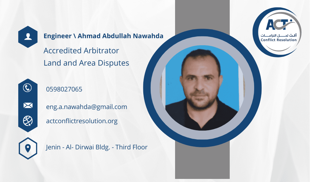 Owner of The Holy Land Engineering Office. An accredited arbitratior in the field of land and area disputes for The Ministry of Justice, and in the field of Commercial and Civil Disputes in ACT Conflict Resolution. A civil engineer specialized in the branch of Area and Geomatics. A 2015 graduate from Polytechnic University - Palestine. holder of a license of Area Engineering from the Palestinian Land Authority. And also an accredited conjecturer at the Capital Market Authority. Authorized to work in the field of Area Engineering in area C in Palestine.