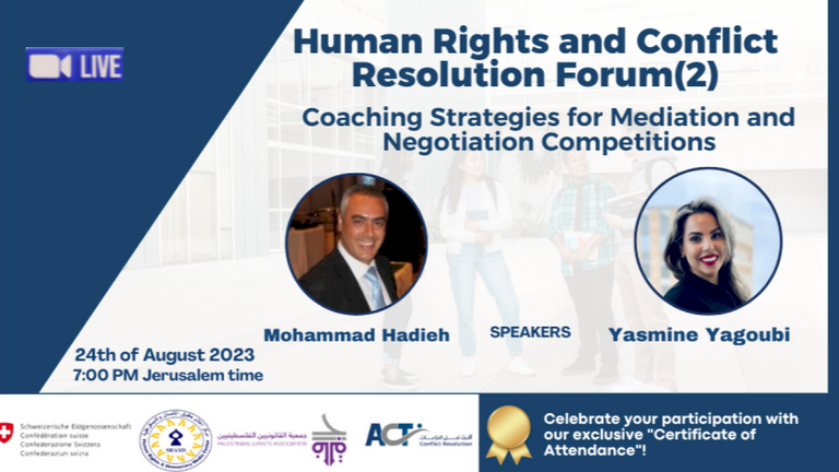 تم اختتام بنجاح الجلسة الثانية من سلسلة ندوات منتدى حقوق الإنسان وحل النزاعات حول استراتيجيات التدريب. شارك في الجلسة خبراء معروفون في مجال حل النزاعات، ياسمين يعقوبي ومحمد هادية، الذين قدموا رؤى وتجارب قيمة.