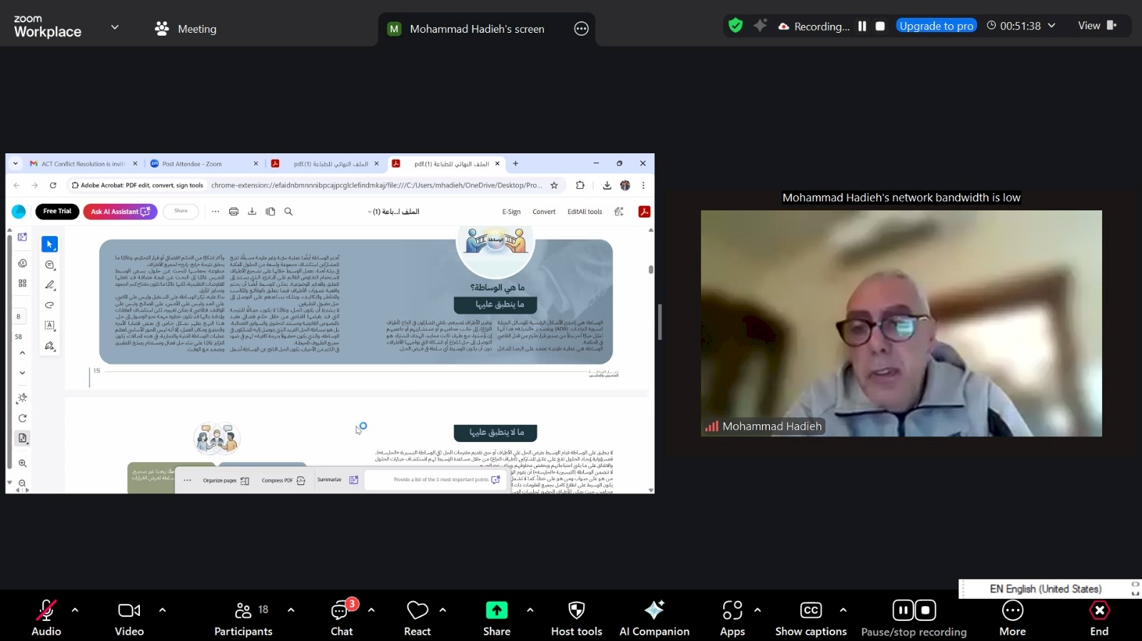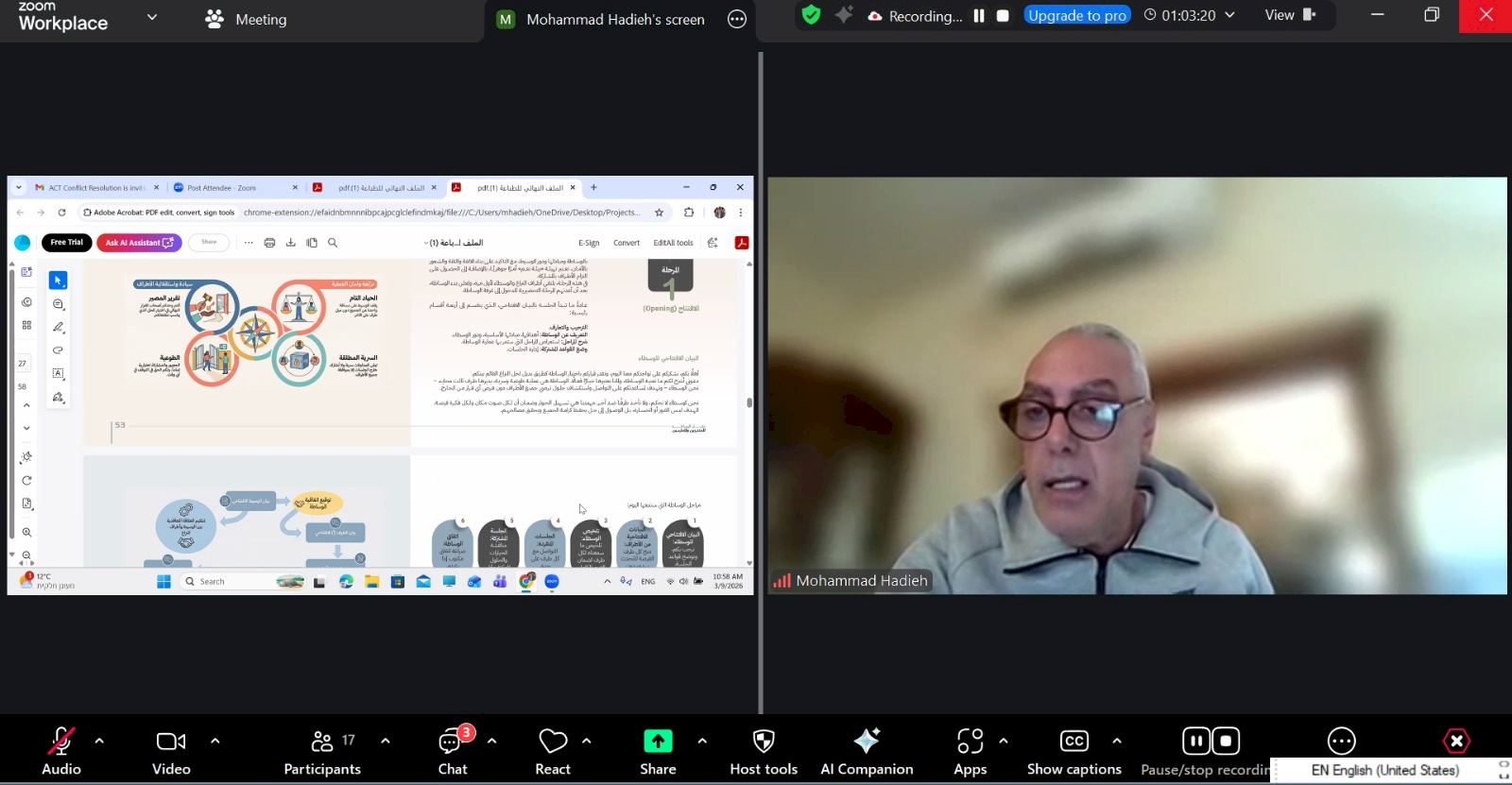 عقدت مؤسسة ACT لحل النزاعات يوم الاثنين الموافق 09/03/2026 ورشة متخصصة لشرح دليل الوساطة الذي أعدّه الأستاذ محمد هادية لمصلحة الحاضنة القانونية انصاف- غزة، لمجموعة من محامي غزة الذين سبق لهم تلقي تدريب في مجال الوساطة، وذلك بهدف تعزيز قدراتهم في ممارسة الوساطة وكذلك نقل المعرفة وتدريب مجموعات جديدة على الوساطة في قطاع غزة ضمن السياق العملي.