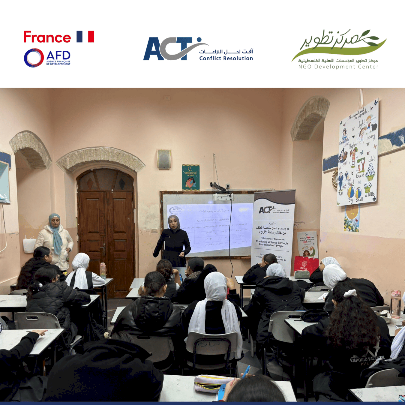 يذكر أن مؤسسة ACT لحل النزاعات، تواصل جهودها في تعزيز قدرات الطلبة في الحوار وتحويل النزاعات والتواصل اللاعنفي، بما يسهم في بناء مجتمعات مدرسية أكثر سلاماً وشمولية من خلال مشروع " وسطاء الغد" الذي ينفذ بتمويل من الوكالة الفرنسية للتنمية وبإدارة مركز تطوير المؤسسات الأهلية.